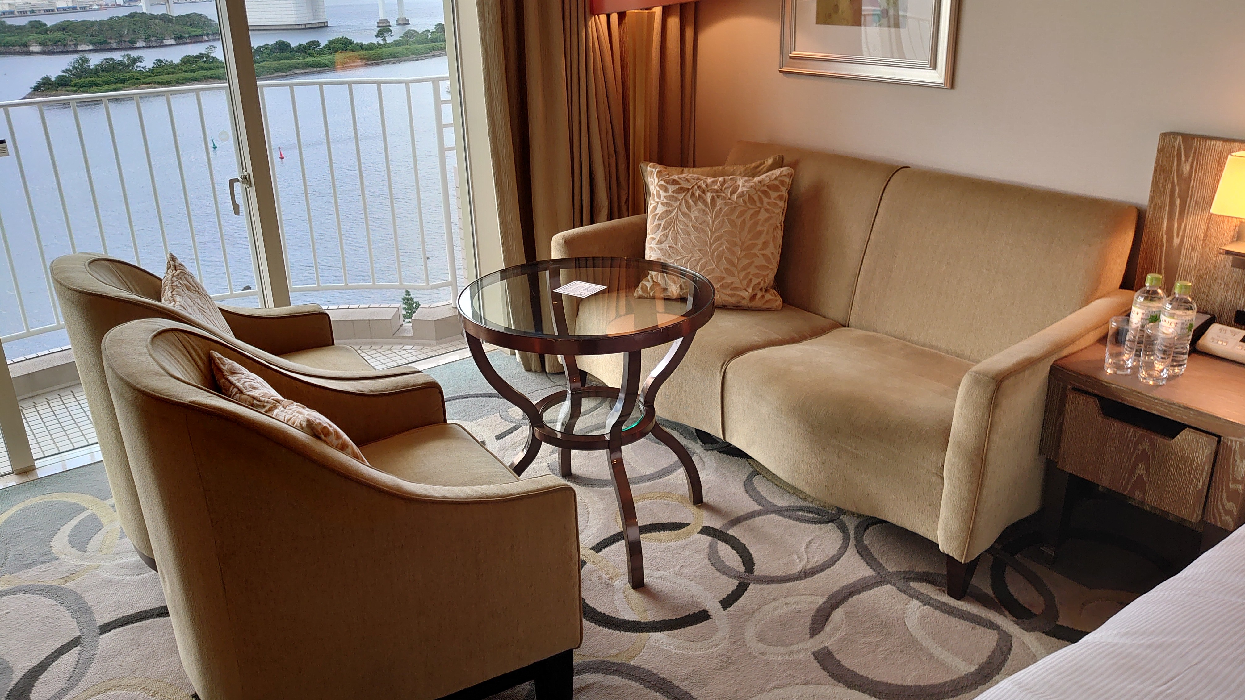 広いお部屋でバルコニーからのレインボーブリッジが見える東京ベイの景色はまさに“東京”を実感できます。