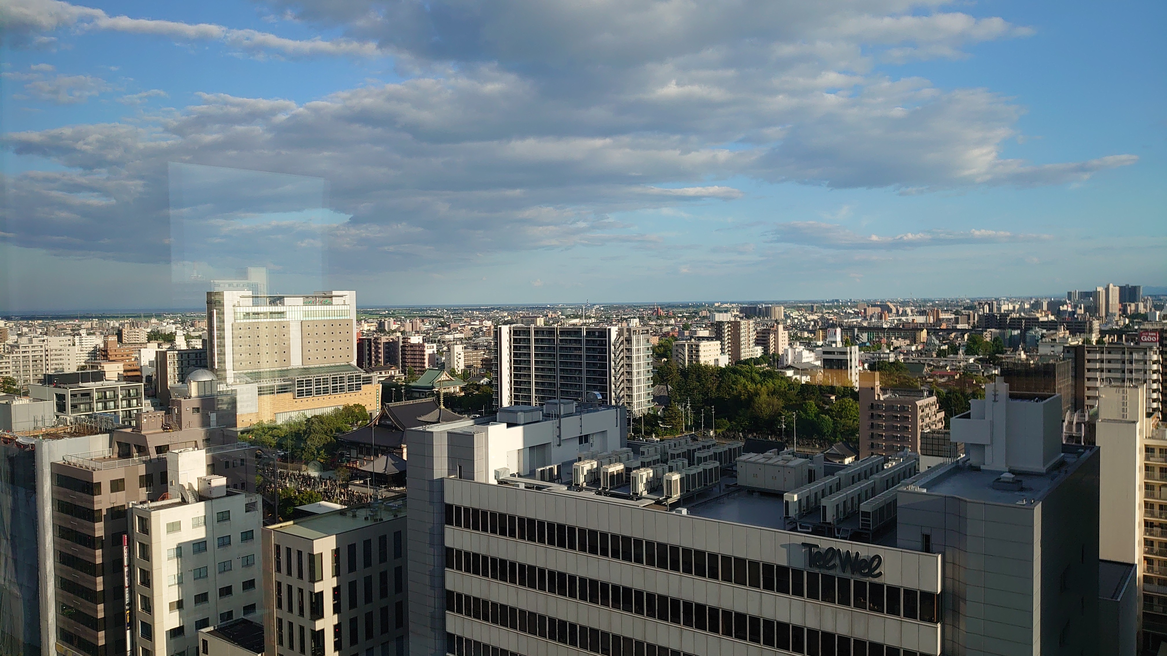 仙台の市街地は駅西口側を中心に広がっているので、駅東口側にはあまり高い建物がなく遠くまで見渡せます。